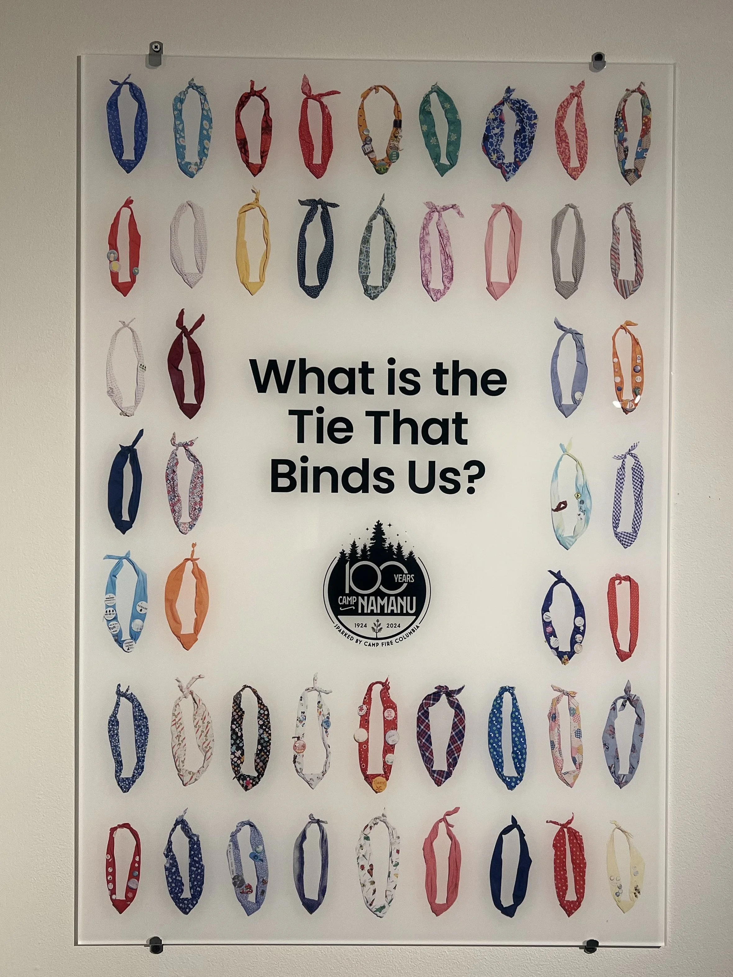 These special ties, a longstanding tradition at Camp Namanu, have been worn by staff members during formal events such as campfires and banquet dinners since the camp's inception. Each summer, a unique fabric pattern is selected to commemorate the season. The poster I created showcases staff ties from as far back as the 1930s to the present day, celebrating nearly a century of camp heritage.